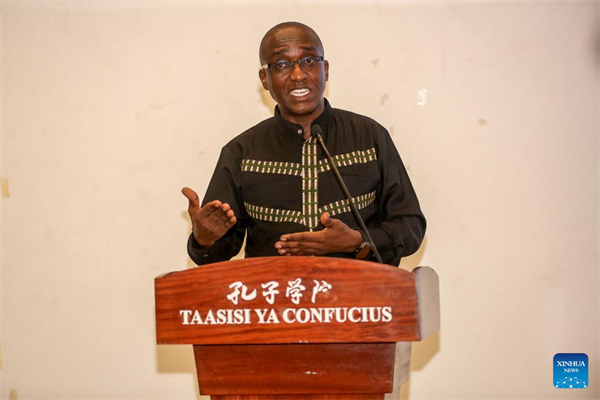 Musa Hans, the Tanzanian director of the Confucius Institute at the University of Dar es Salaam, delivers a speech during an activity celebrating Chinese Language Day in Dar es Salaam, Tanzania, on April 9, 2025. [Xinhua/Emmanuel Herman]